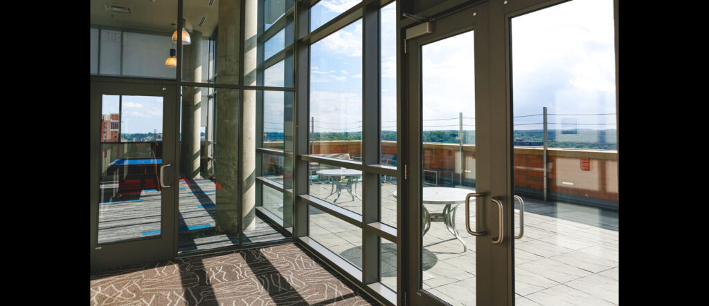 Concealed door closers, available in hold-open or non-hold-open options, ensure smooth, controlled operation while maintaining a clean appearance.